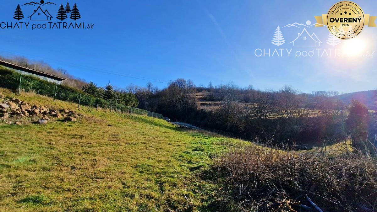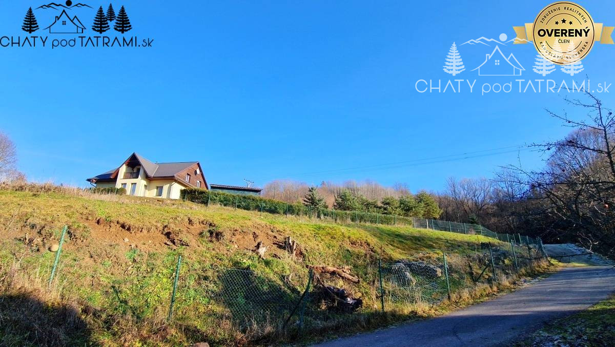 Terasovitý pozemok o výmere 1368 m2 je oplotený. Na hranici pozemku je elektrická prípojka, vodovodná prípojka je priamo na pozemku.